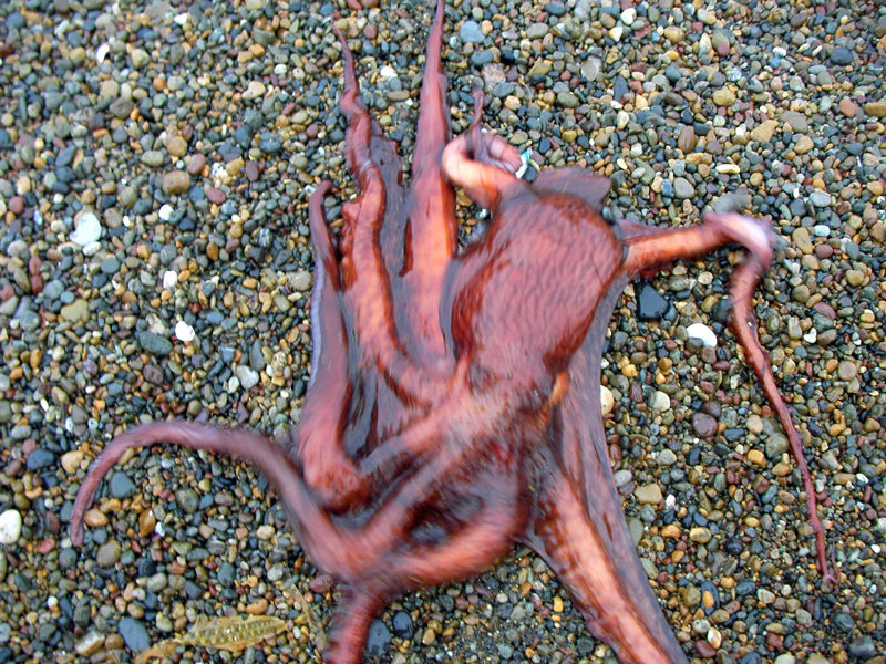 最初ゴミ袋でも引っかかったのかと思ったらタコでした。