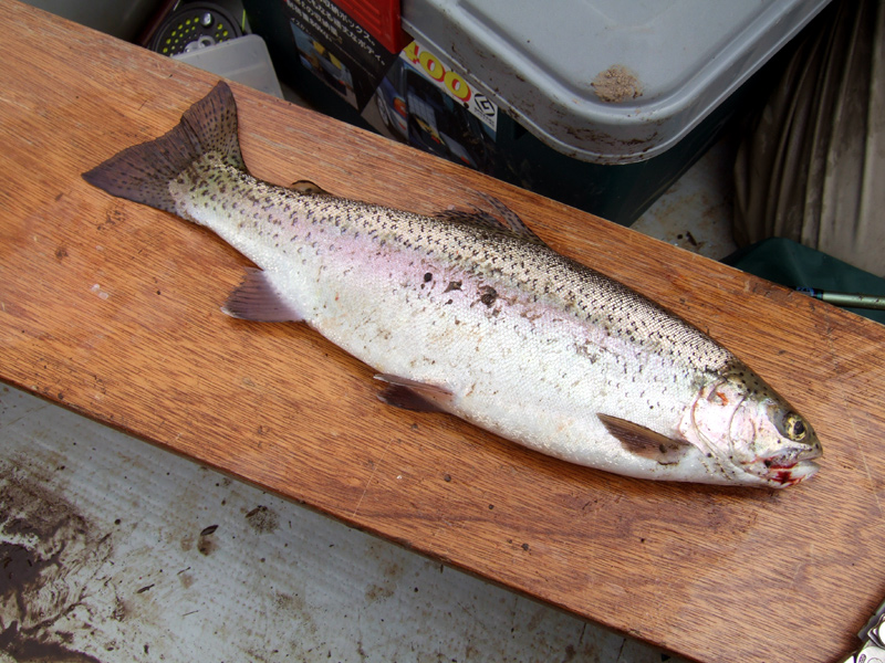 しまやんが50cmぐらいのニジマスをバラしたのみで終了。