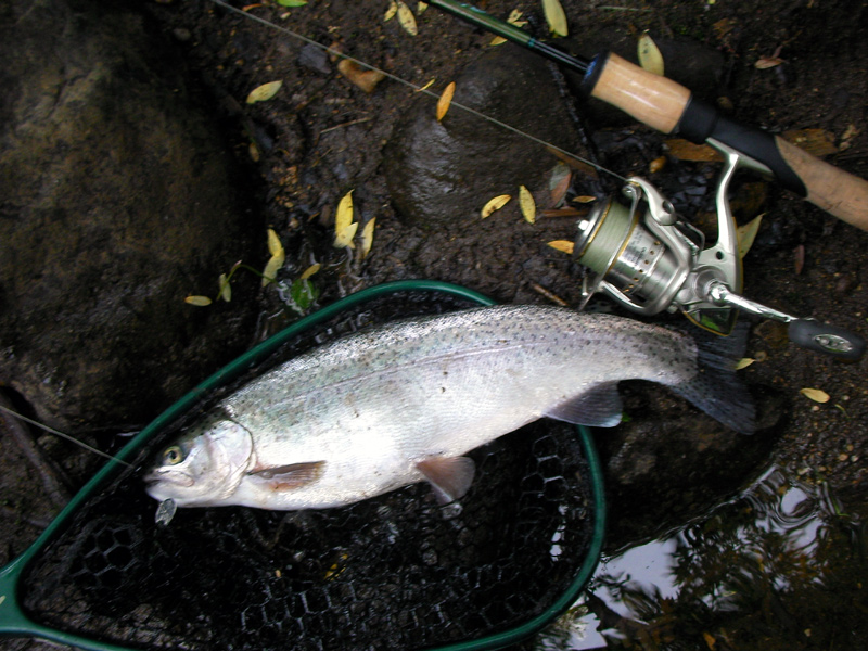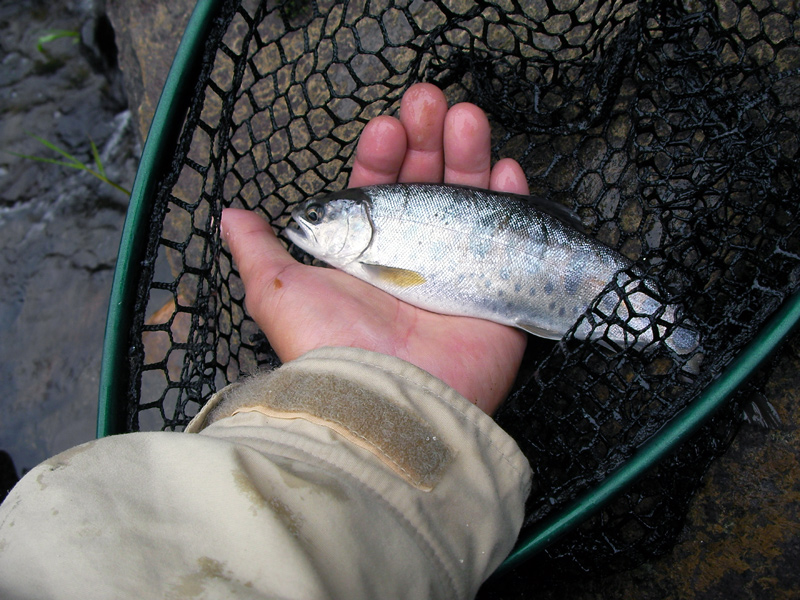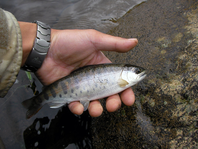 駐車場所からしばらく川沿いを歩いて釣り始め、ほんの20分ほどで