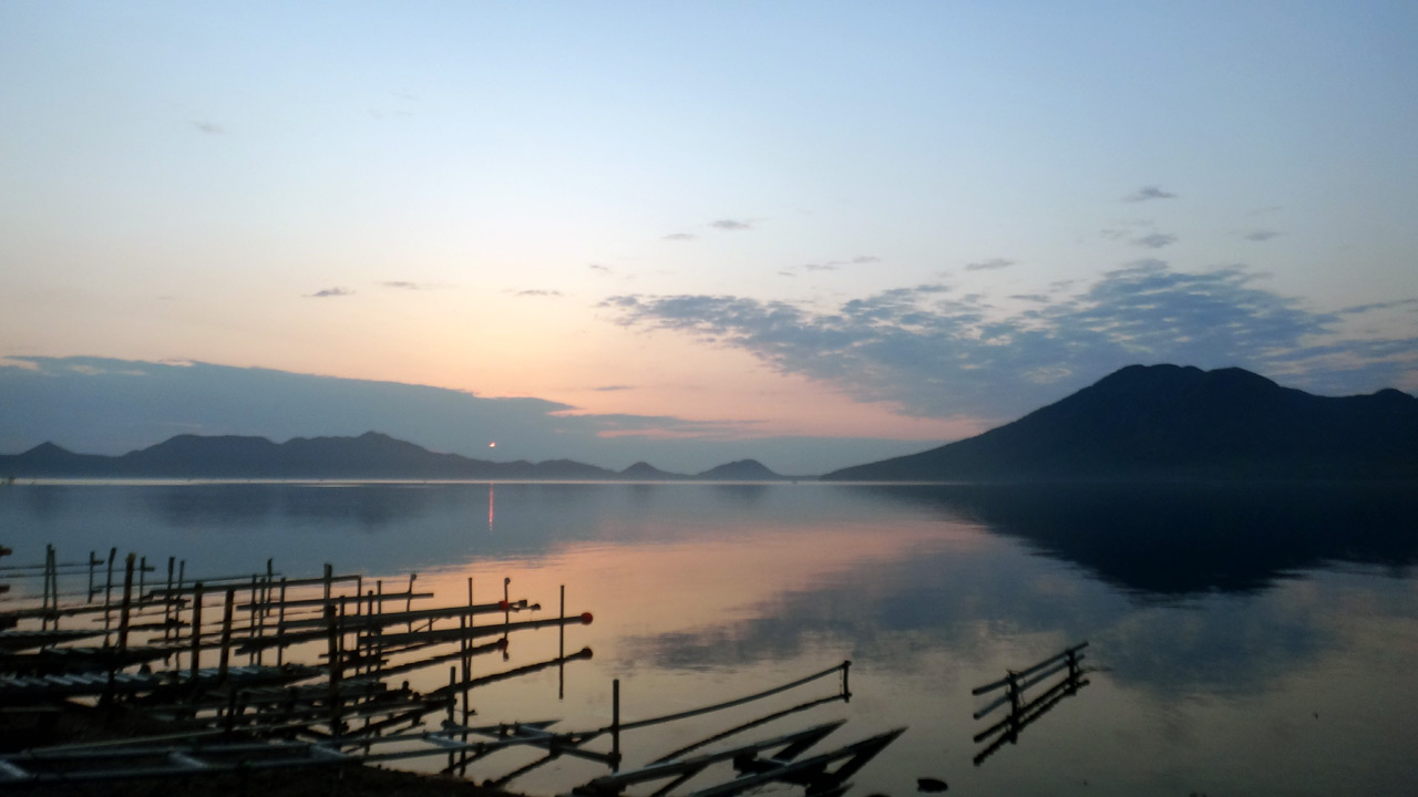 早朝から太公望たちが湖上に船を浮かべ釣りを楽しんだ。