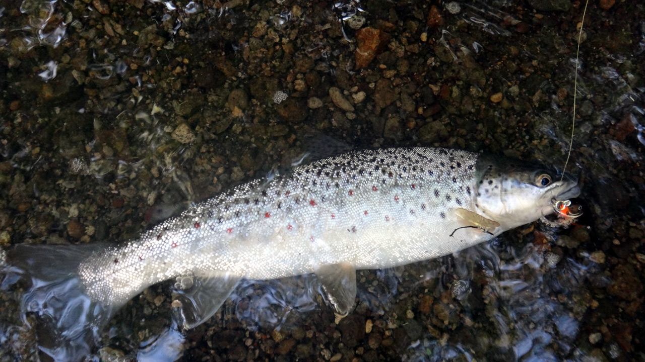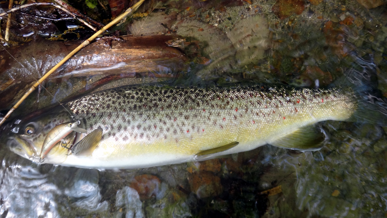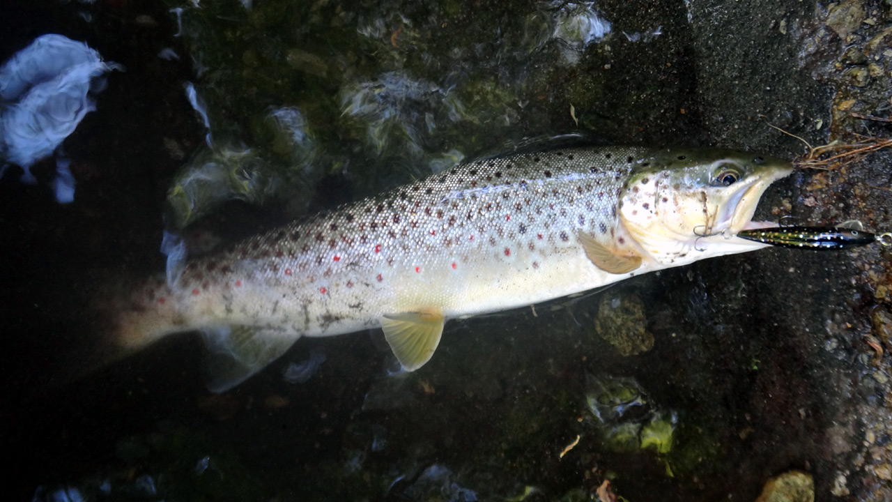 またしばらく進んで、今度はオカッパリの人のすぐ手前でヒット。
