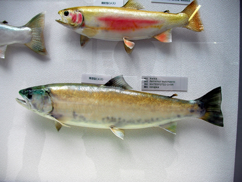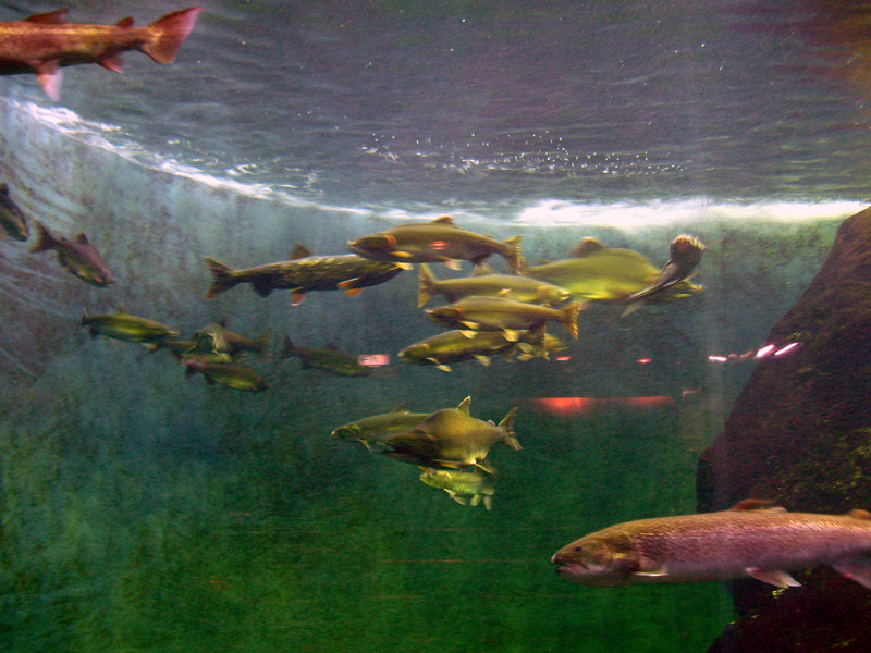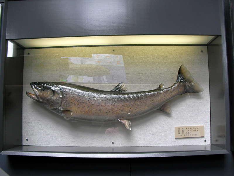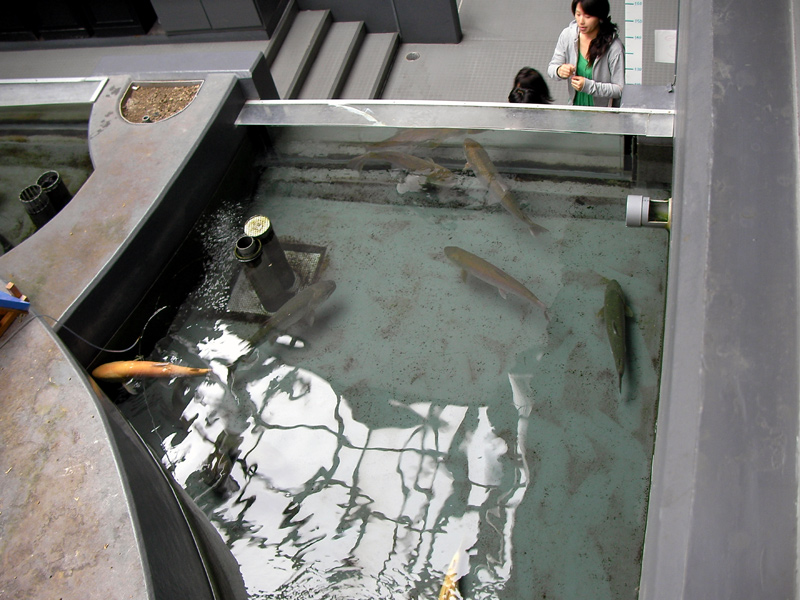 この水槽には、イトウやアメマス、カラフトマスなんかが飼育されてます。