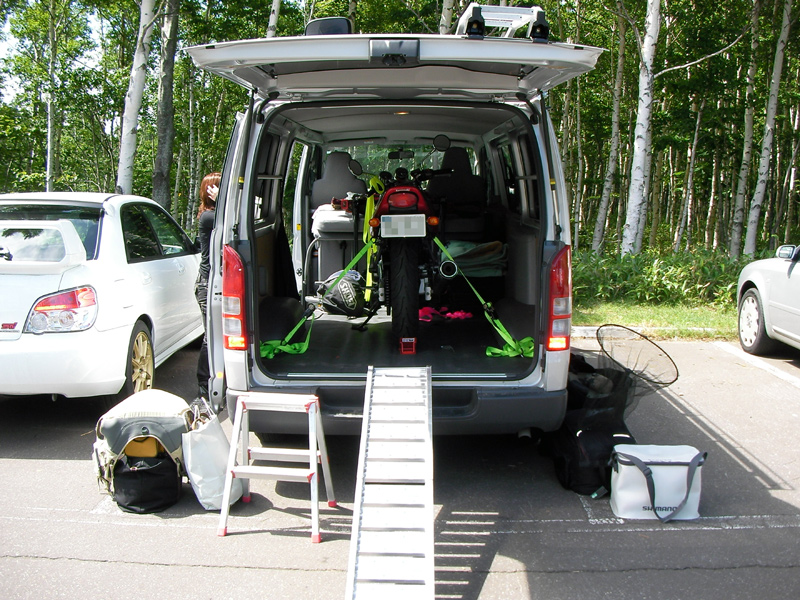 羅臼の道の駅で再会して、バイクはまたハイエースへ積み込みます。