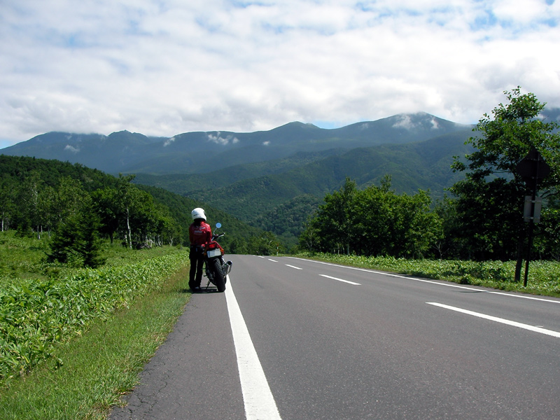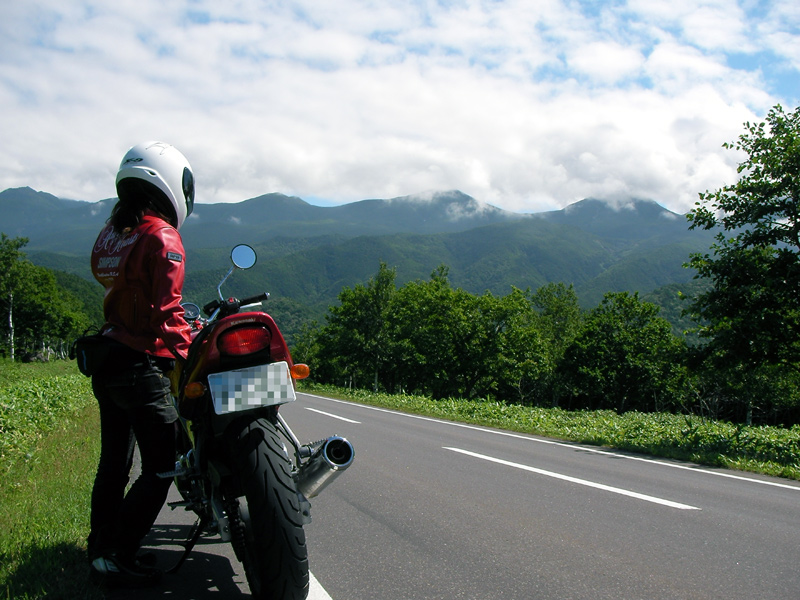 早速バイクを降ろし、車は駐車場に置いてタンデムで知床五湖方面を目指します。