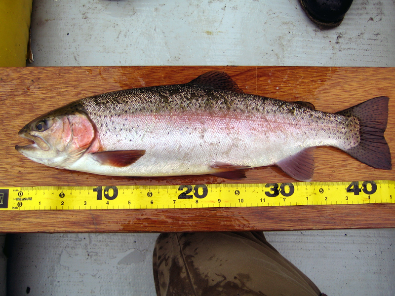 あちこちで大型のライズ音が聞こえてきて、見るからに50cm以上のニジマスが
