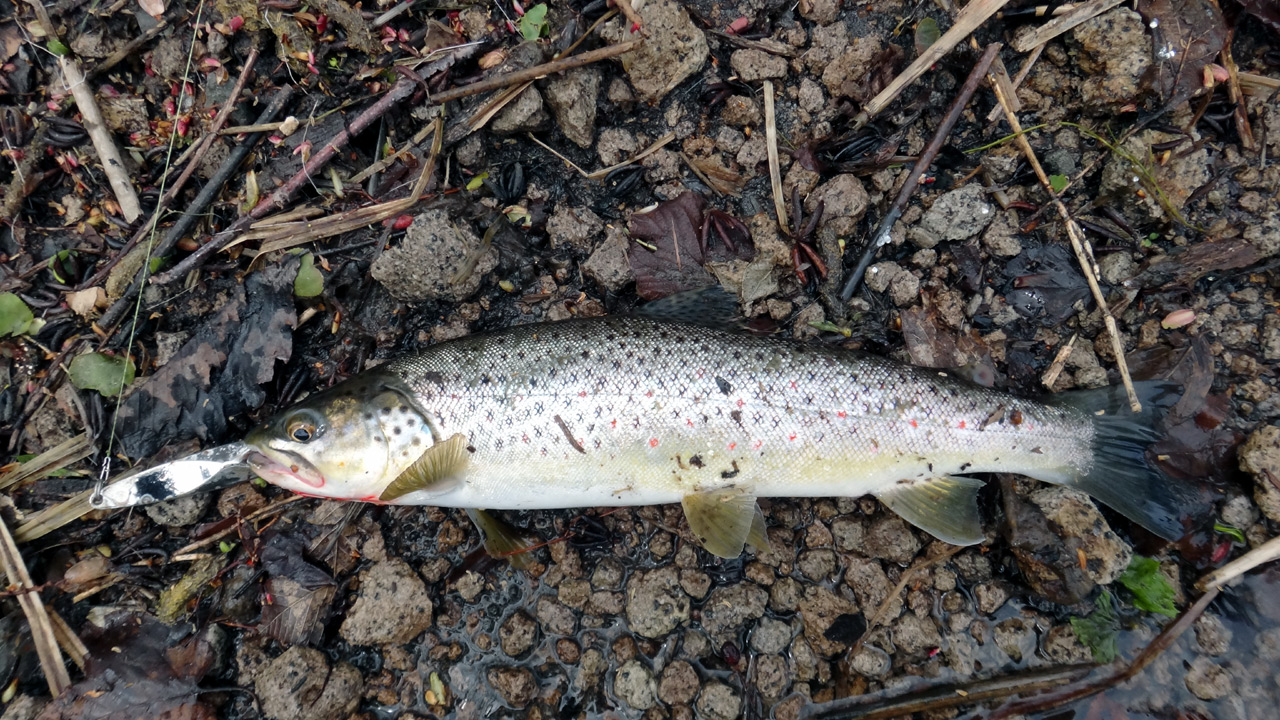 この場所では定番の、スモルトっぽいブラウントラウト。